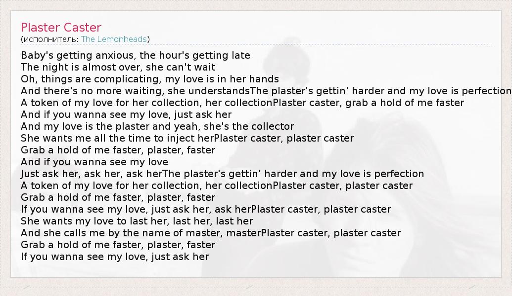 If you wanna see my love, just ask her, ask herPlaster caster, plaster caster