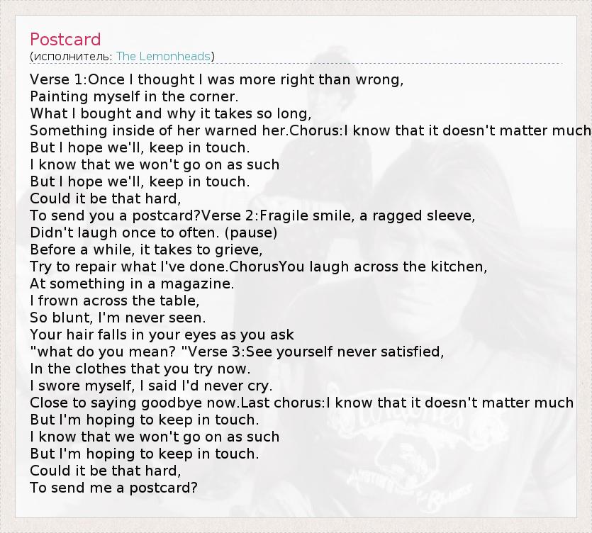 А как ты думаешь, о чем песня "Postcard" ?