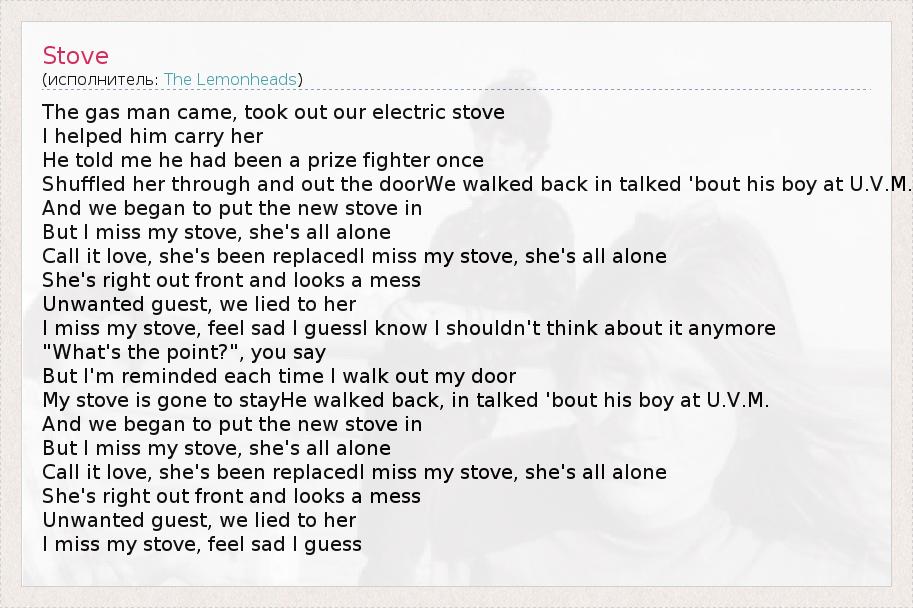 I miss my stove, feel sad I guessI know I shouldn't think about it anymore