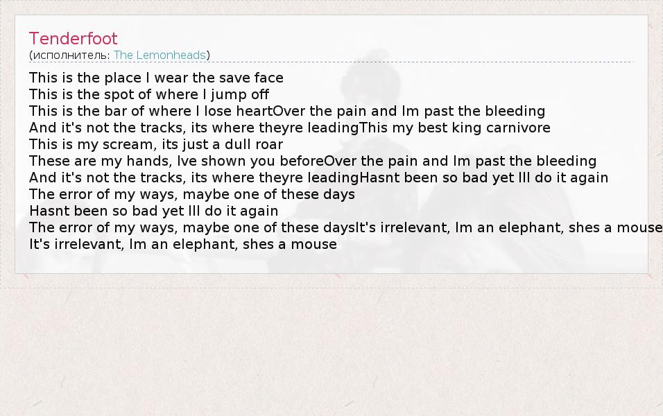 А как ты думаешь, о чем песня "Tenderfoot" ?