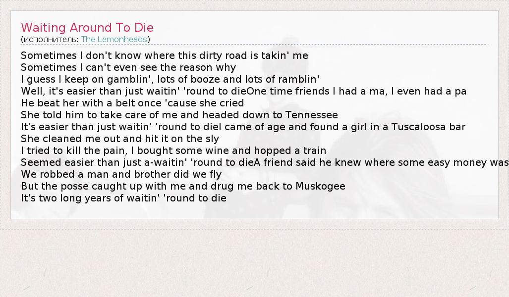 А как ты думаешь, о чем песня "Waiting Around To Die" ?