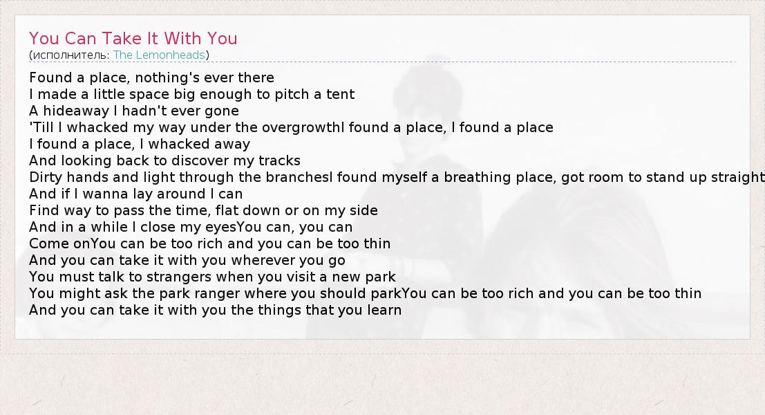 А как ты думаешь, о чем песня "You Can Take It With You" ?