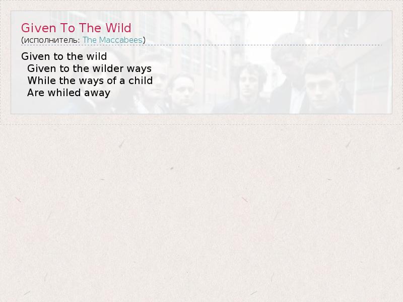 А как ты думаешь, о чем песня "Given To The Wild" ?