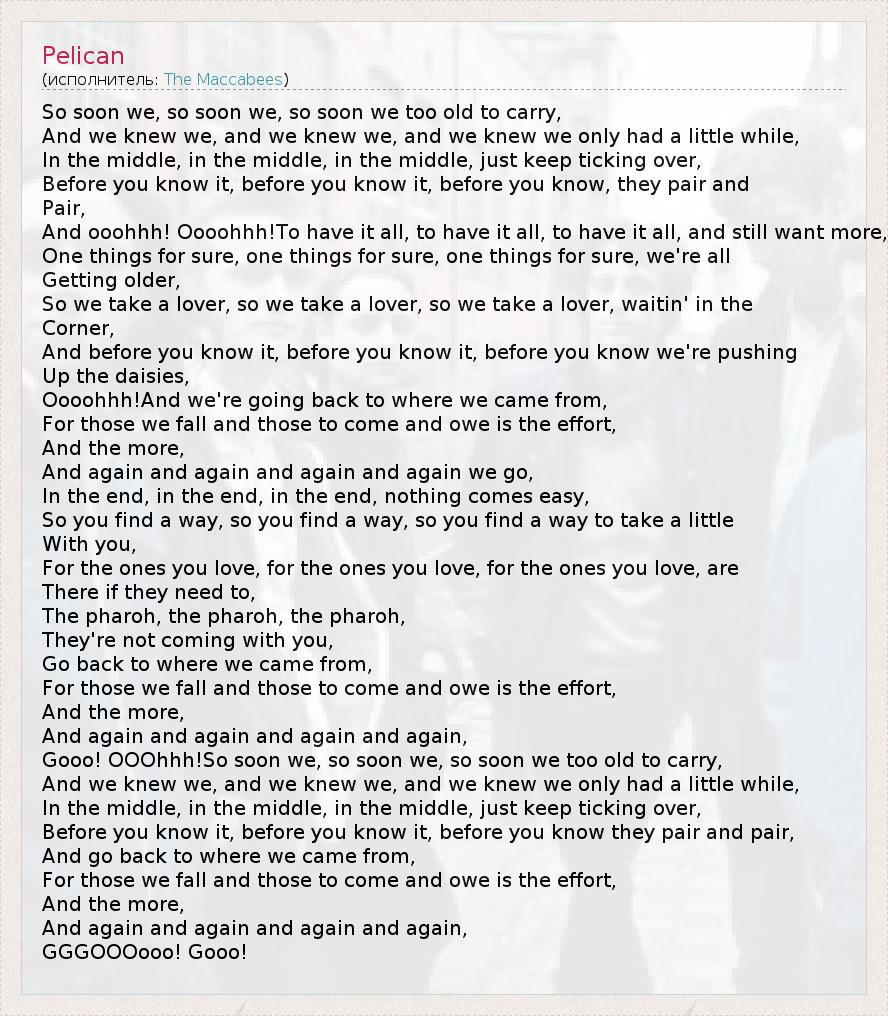 Gooo! OOOhhh!So soon we, so soon we, so soon we too old to carry,