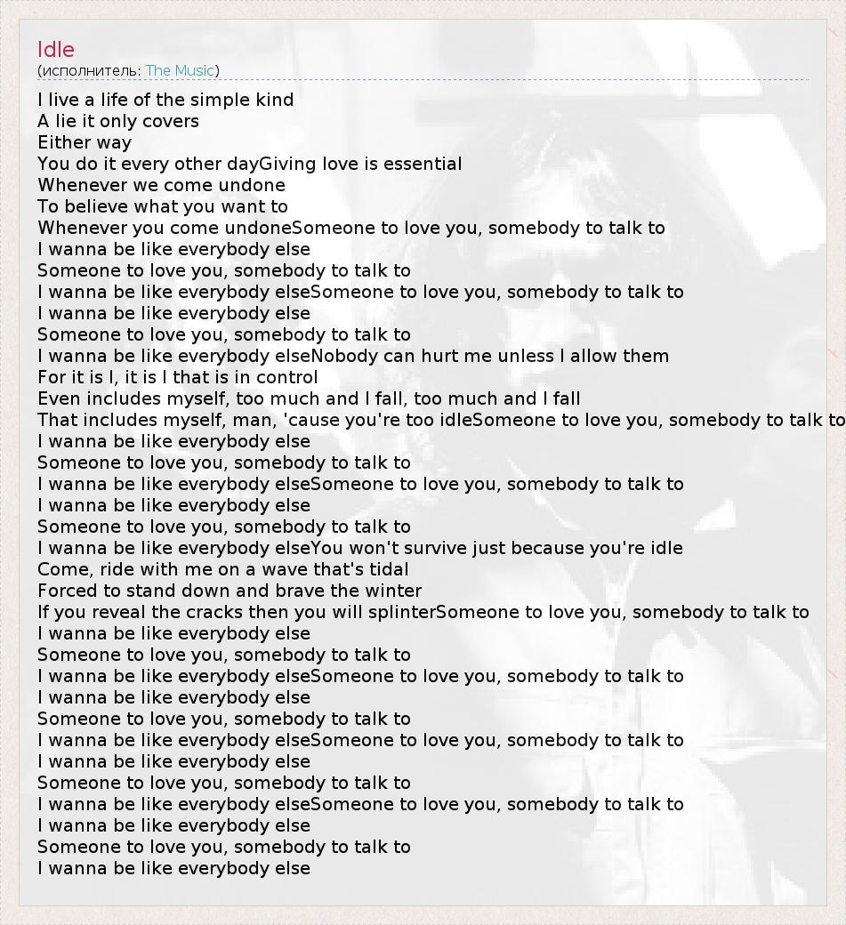I wanna be like everybody elseSomeone to love you, somebody to talk to