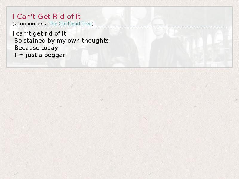 А как ты думаешь, о чем песня "I Can't Get Rid of It" ?