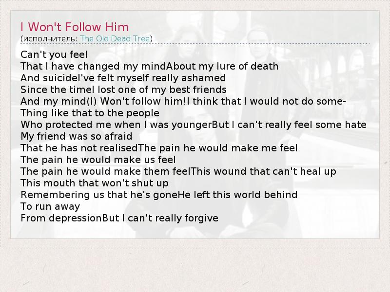 А как ты думаешь, о чем песня "I Won't Follow Him" ?
