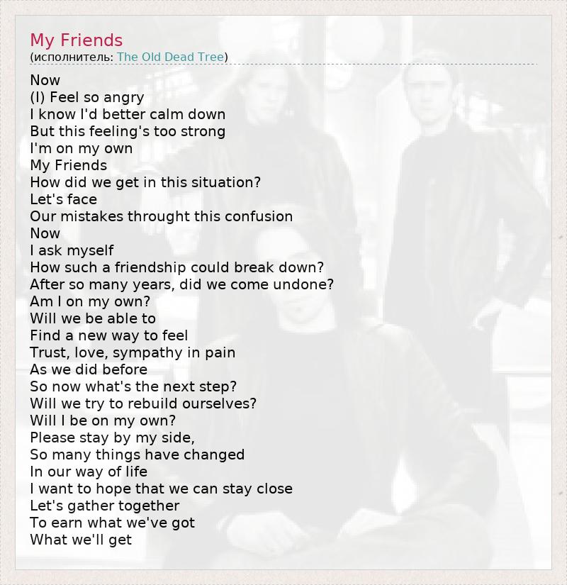 А как ты думаешь, о чем песня "My Friends" ?