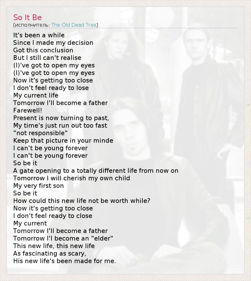 А как ты думаешь, о чем песня "So It Be" ?