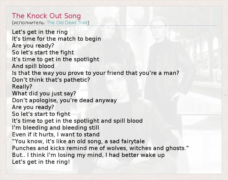 А как ты думаешь, о чем песня "The Knock Out Song" ?
