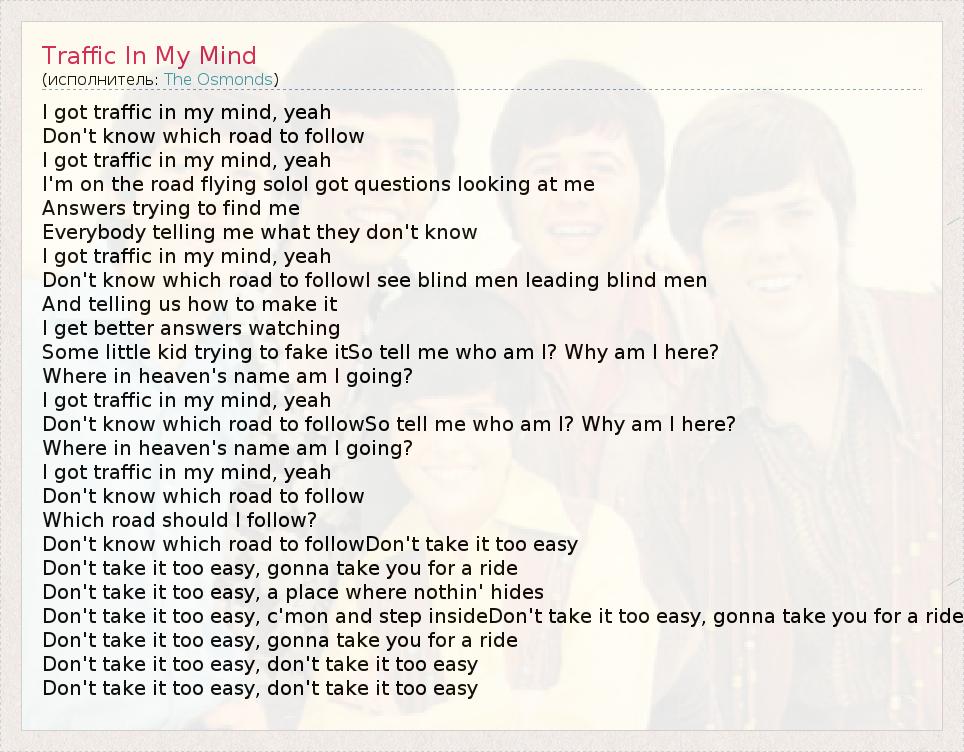 А как ты думаешь, о чем песня "Traffic In My Mind" ?