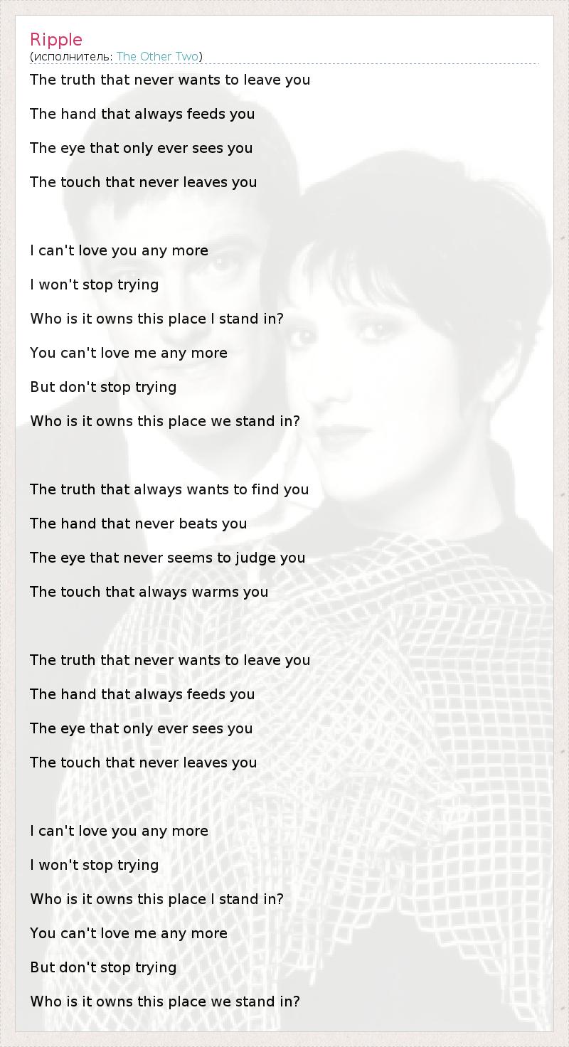 А как ты думаешь, о чем песня "Ripple" ?