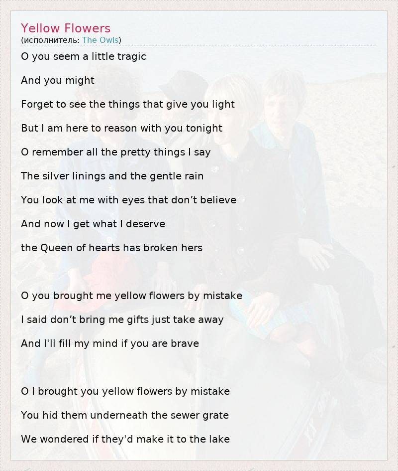 А как ты думаешь, о чем песня "Yellow Flowers" ?