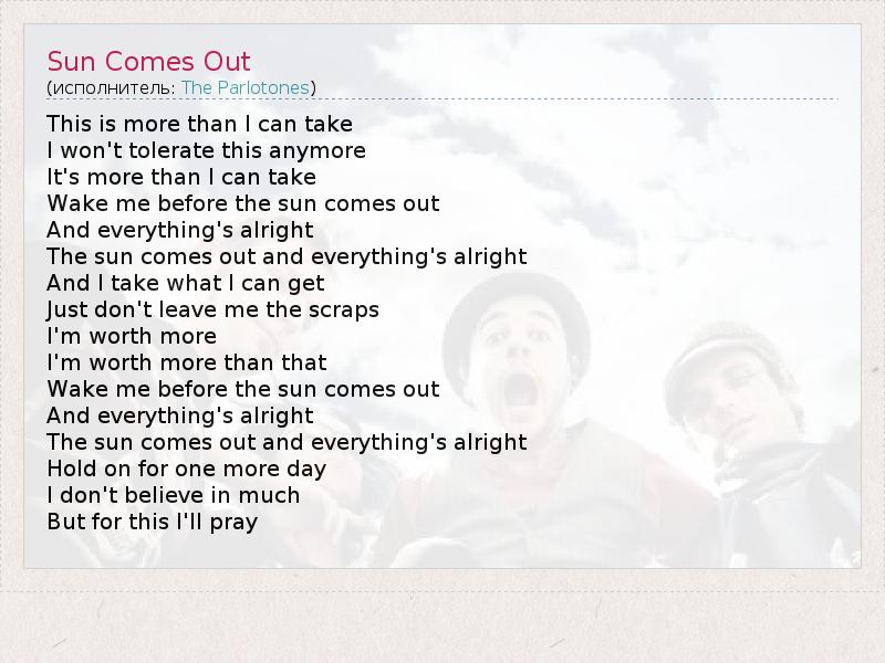 А как ты думаешь, о чем песня "Sun Comes Out" ?