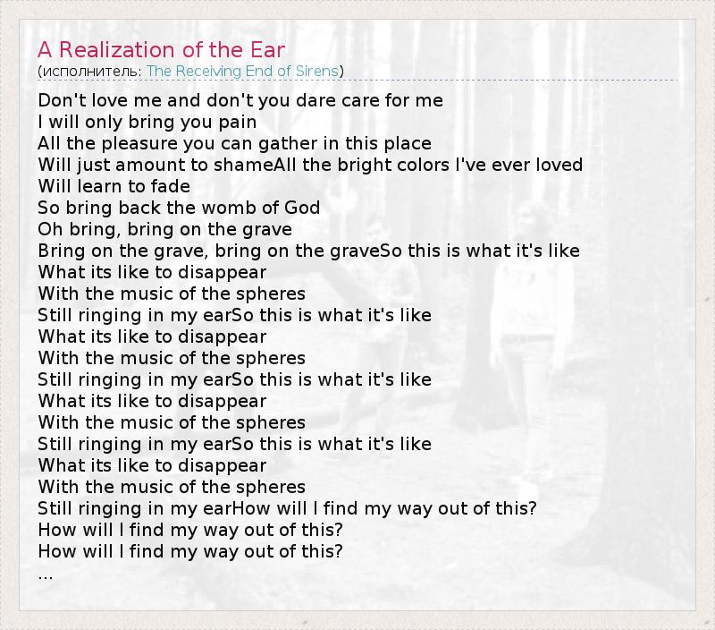 А как ты думаешь, о чем песня "A Realization of the Ear" ?