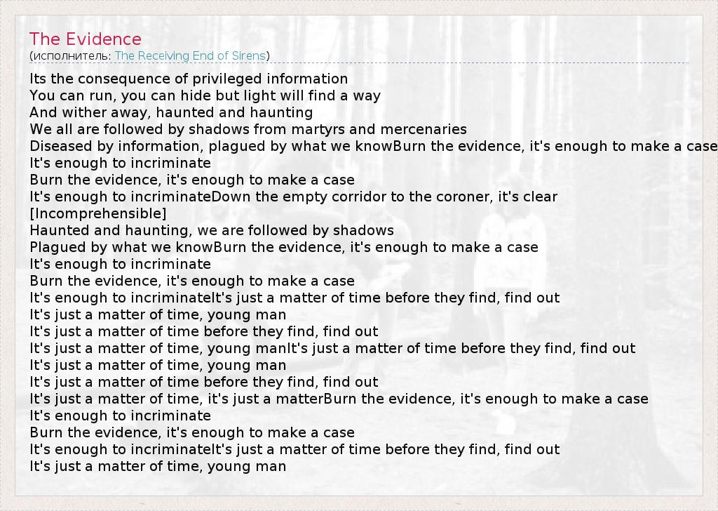 It's just a matter of time, it's just a matterBurn the evidence, it's enough to make a case