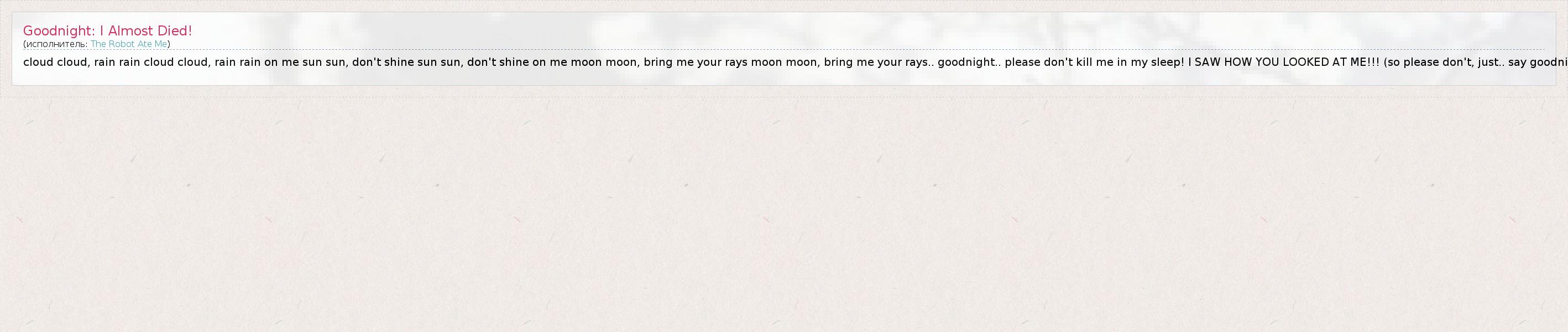 А как ты думаешь, о чем песня "Goodnight: I Almost Died!" ?