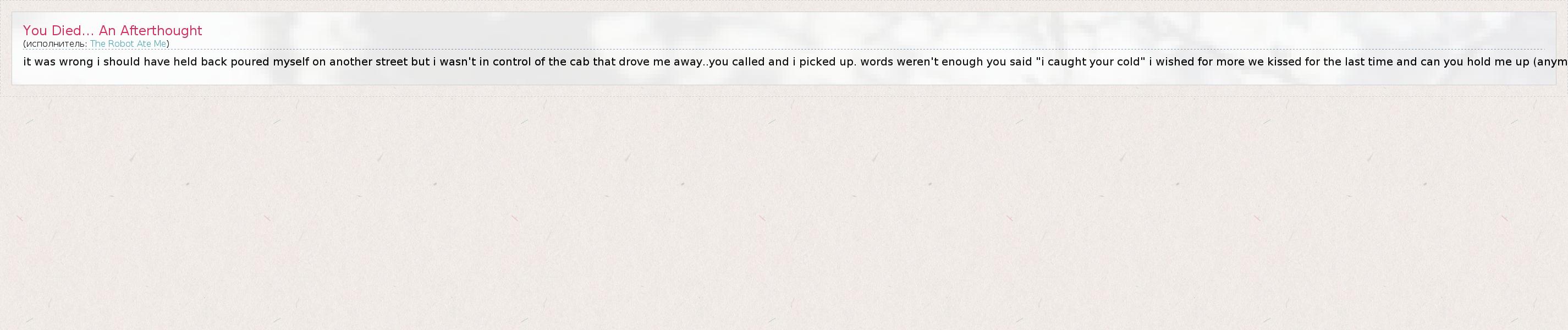 А как ты думаешь, о чем песня "You Died... An Afterthought" ?