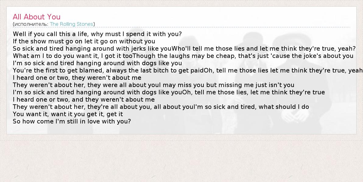 They weren't about her, they're all about you, all about youI'm so sick and tired, what should I do