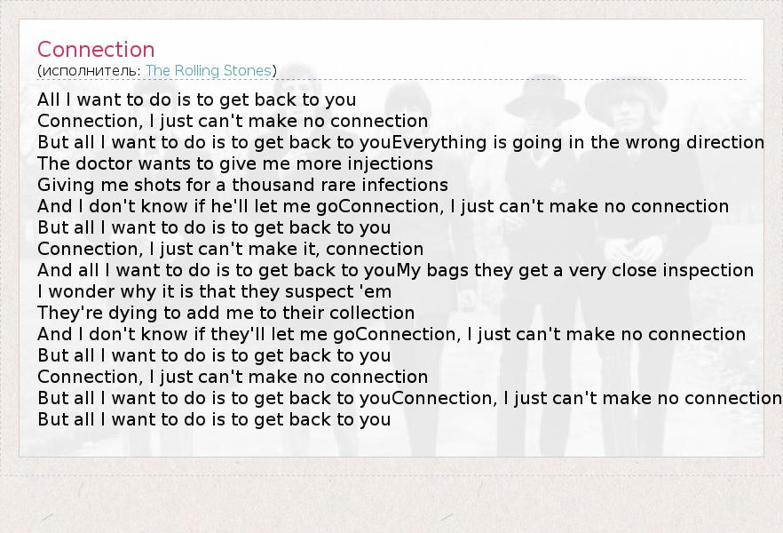 But all I want to do is to get back to youConnection, I just can't make no connection