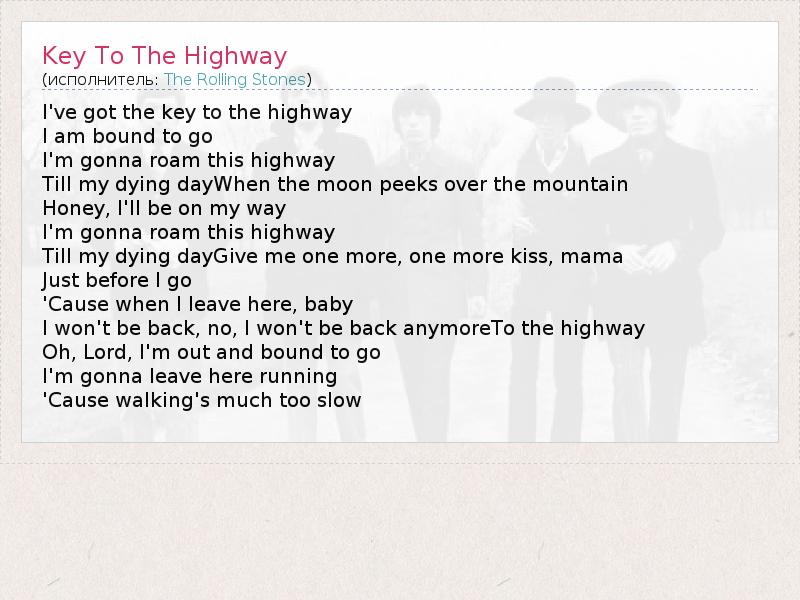 А как ты думаешь, о чем песня "Key To The Highway" ?