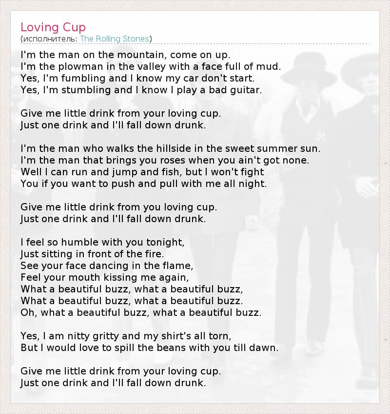 А как ты думаешь, о чем песня "Loving Cup" ?
