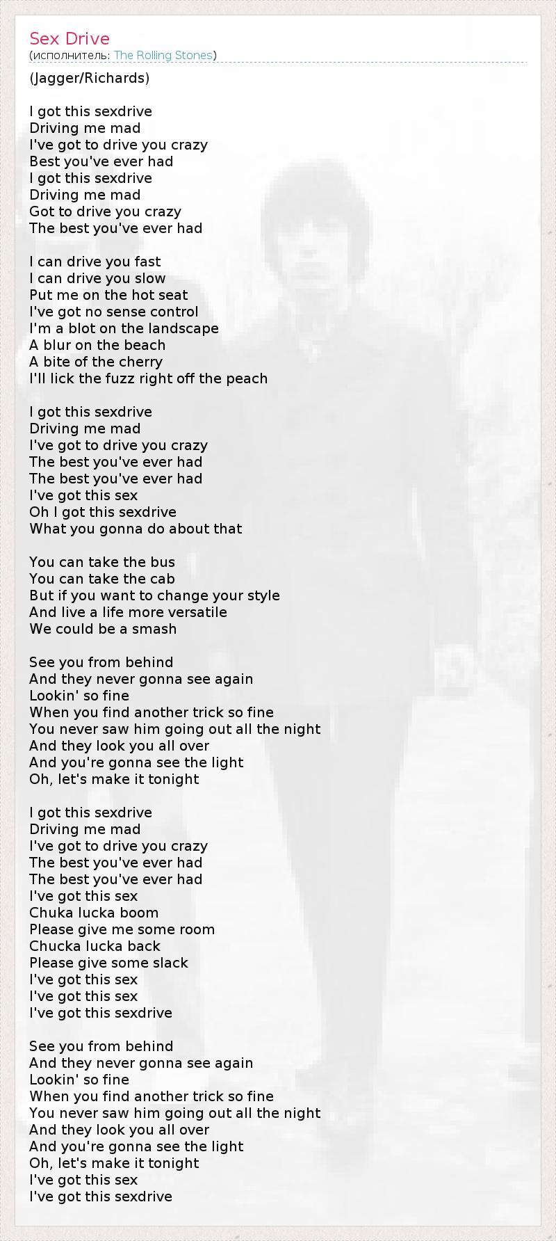 А как ты думаешь, о чем песня "Sex Drive" ?