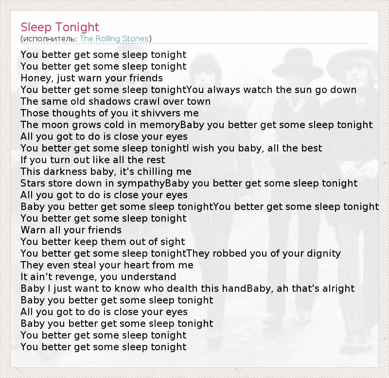 А как ты думаешь, о чем песня "Sleep Tonight" ?
