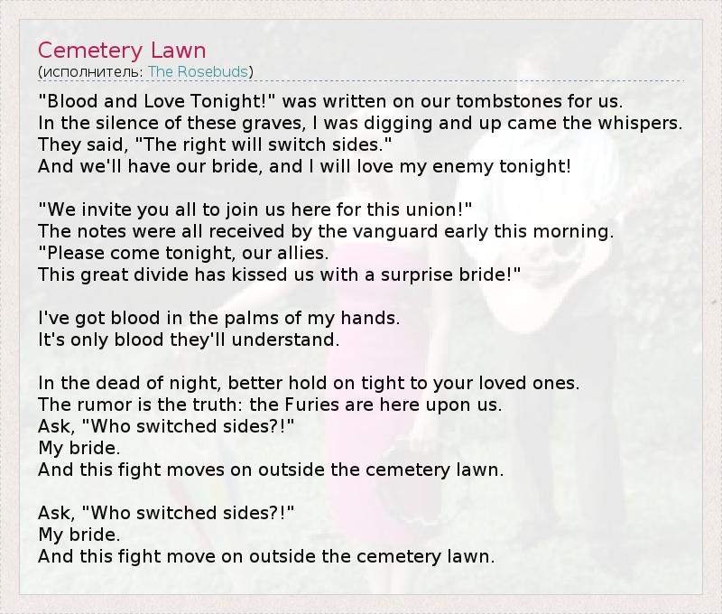 А как ты думаешь, о чем песня "Cemetery Lawn" ?