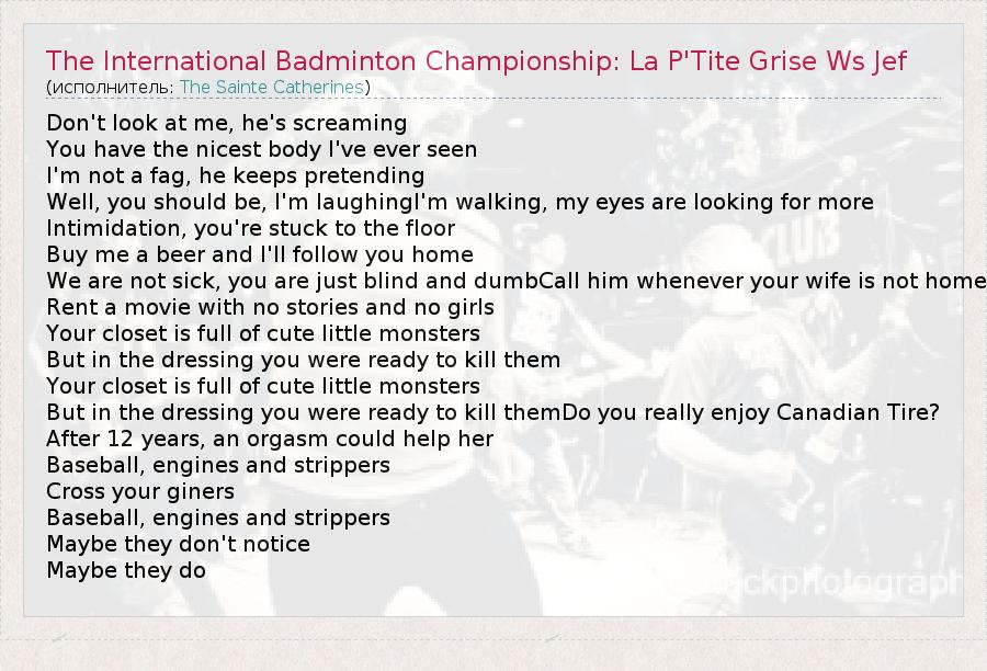 А как ты думаешь, о чем песня "The International Badminton Championship: La P'Tite Grise Ws Jef" ?