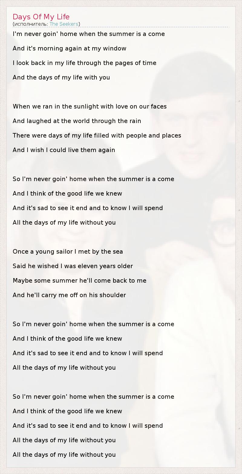 А как ты думаешь, о чем песня "Days Of My Life" ?