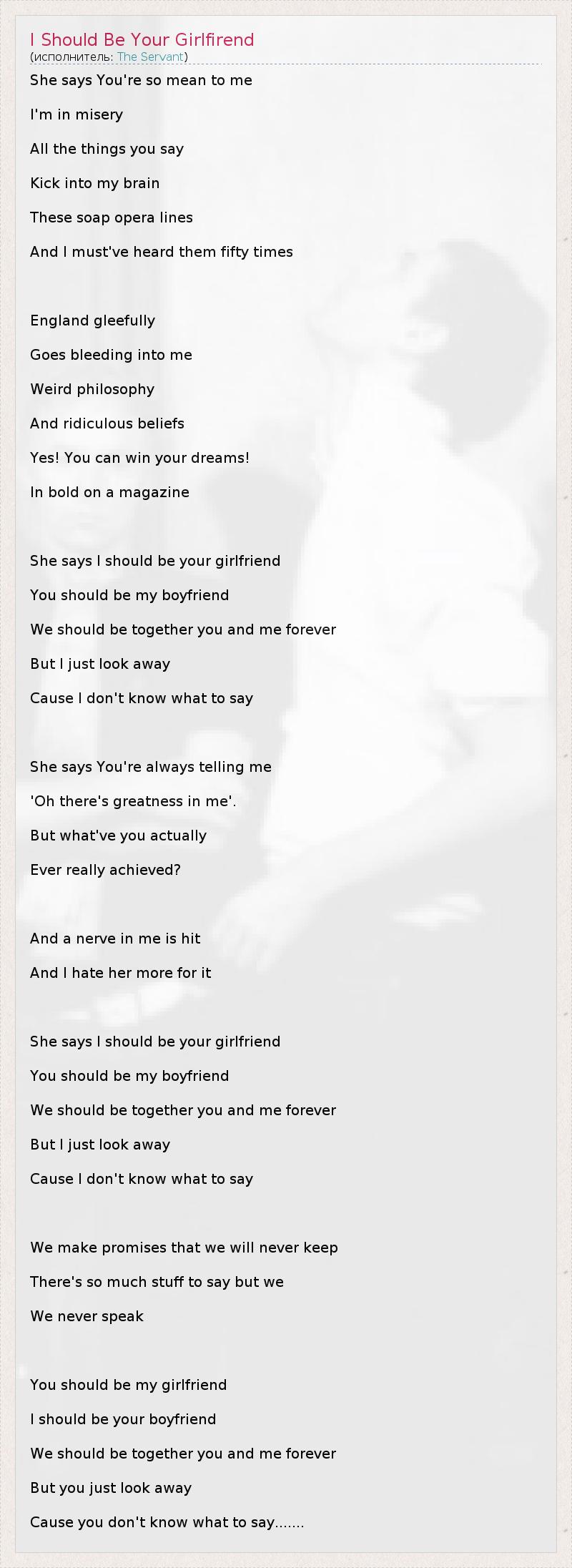 А как ты думаешь, о чем песня "I Should Be Your Girlfirend" ?