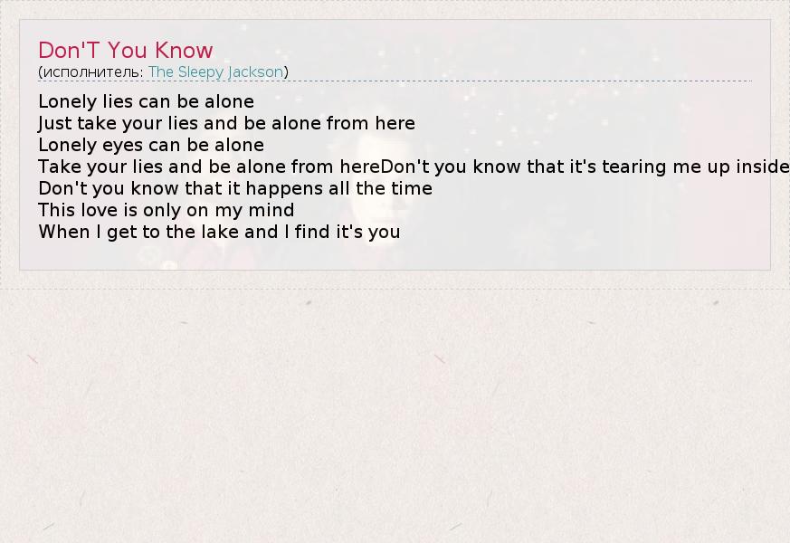 А как ты думаешь, о чем песня "Don'T You Know" ?