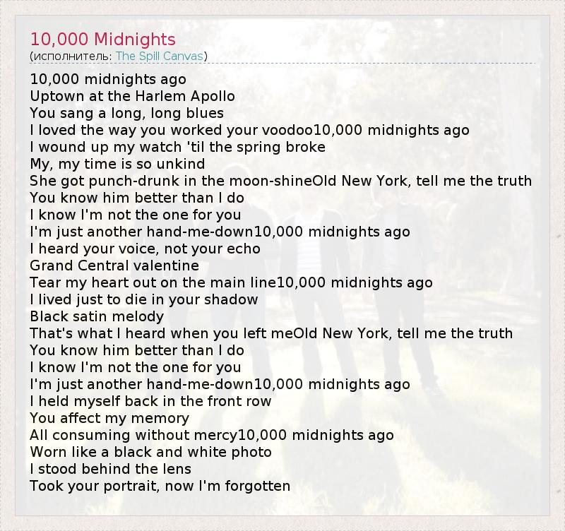 А как ты думаешь, о чем песня "10,000 Midnights" ?