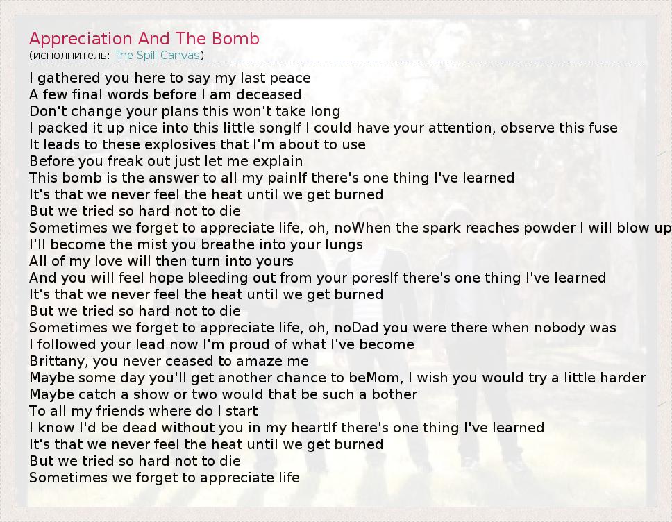 А как ты думаешь, о чем песня "Appreciation And The Bomb" ?