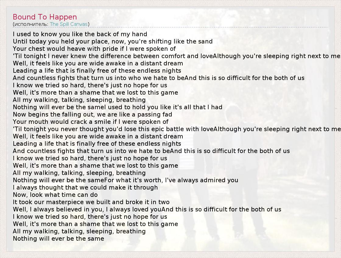 А как ты думаешь, о чем песня "Bound To Happen" ?