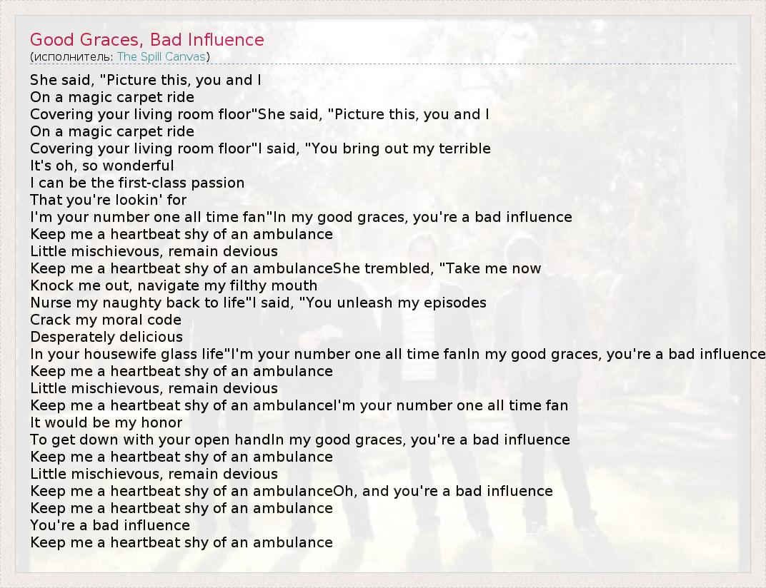 А как ты думаешь, о чем песня "Good Graces, Bad Influence" ?
