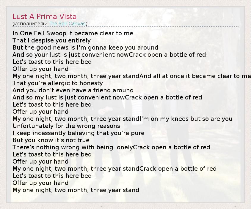 А как ты думаешь, о чем песня "Lust A Prima Vista" ?