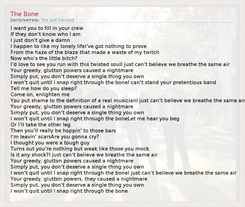 А как ты думаешь, о чем песня "The Bone" ?