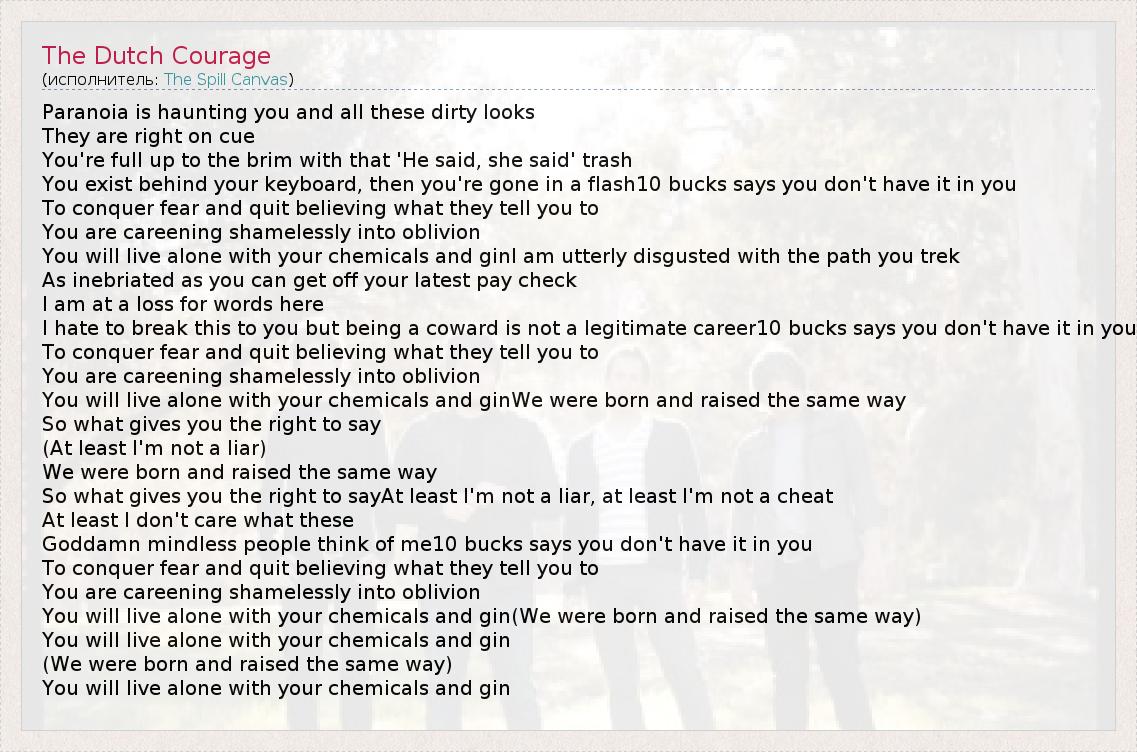 А как ты думаешь, о чем песня "The Dutch Courage" ?