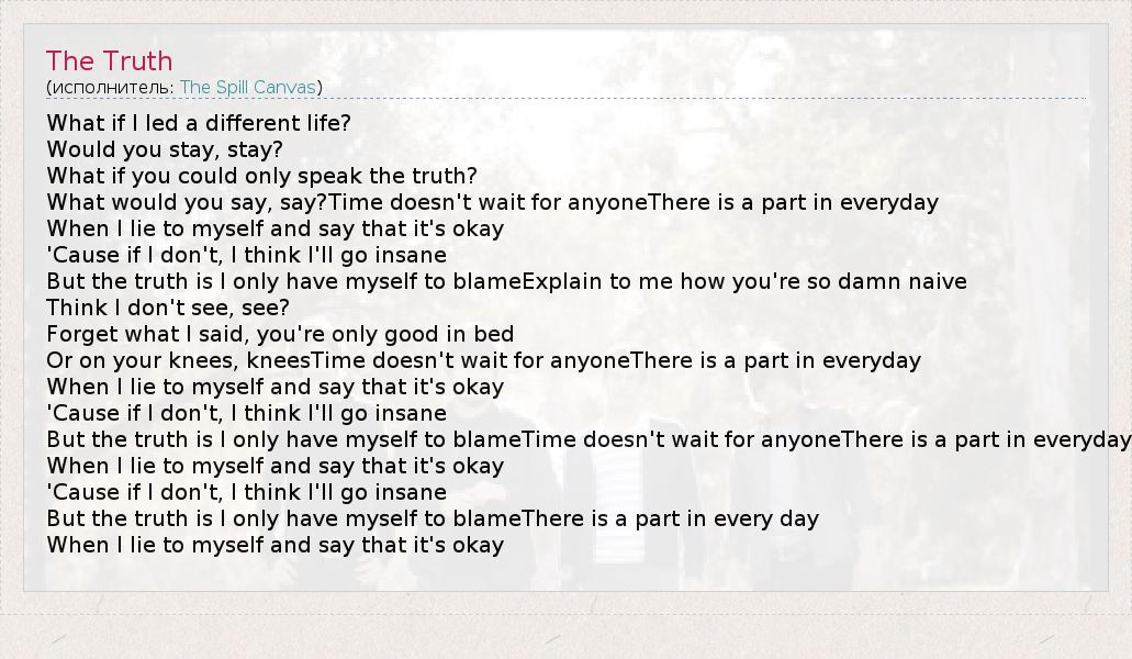 А как ты думаешь, о чем песня "The Truth" ?