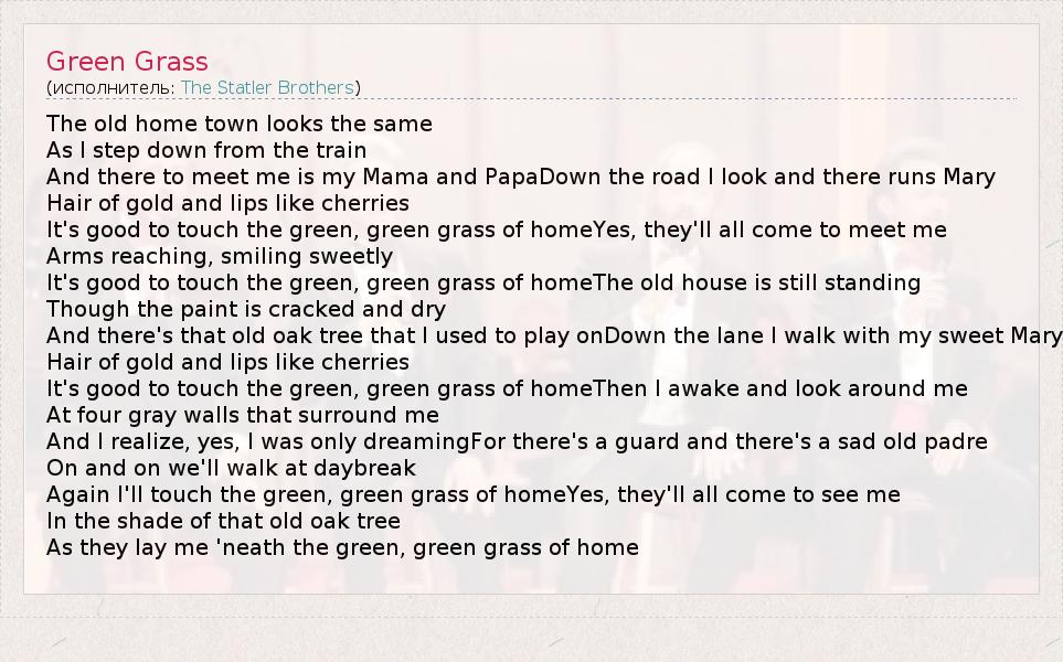 А как ты думаешь, о чем песня "Green Grass" ?