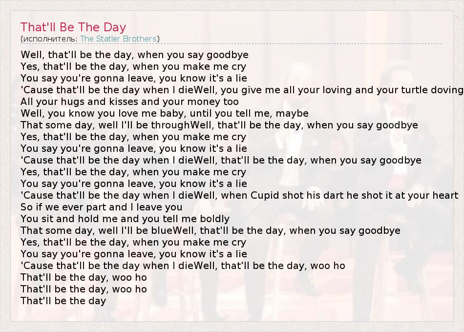 А как ты думаешь, о чем песня "That'll Be The Day" ?