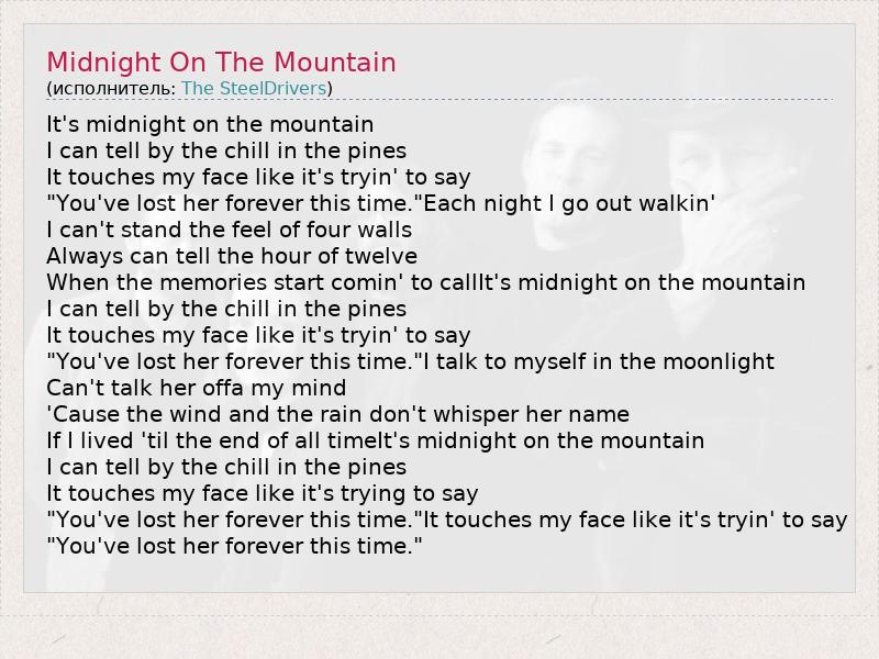 А как ты думаешь, о чем песня "Midnight On The Mountain" ?