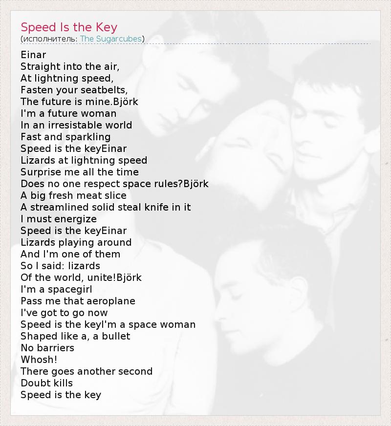 А как ты думаешь, о чем песня "Speed Is the Key" ?