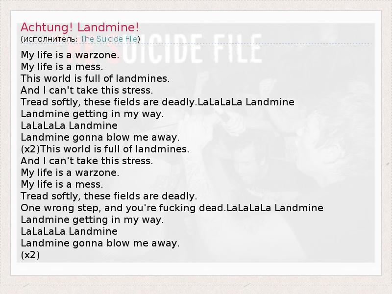 А как ты думаешь, о чем песня "Achtung! Landmine!" ?