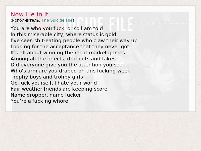 А как ты думаешь, о чем песня "Now Lie in It" ?