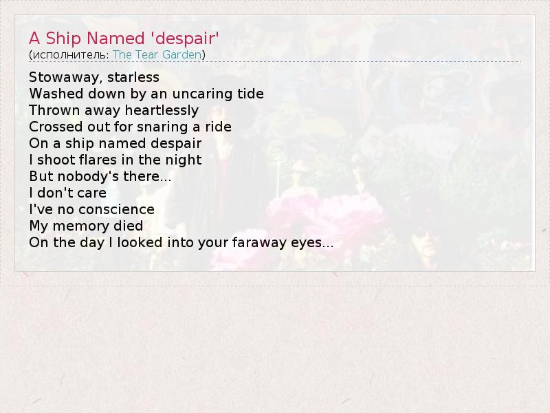 А как ты думаешь, о чем песня "A Ship Named 'despair'" ?