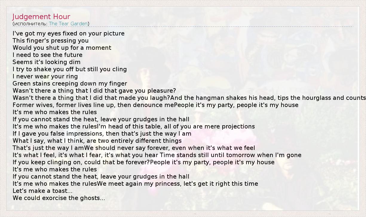 А как ты думаешь, о чем песня "Judgement Hour" ?