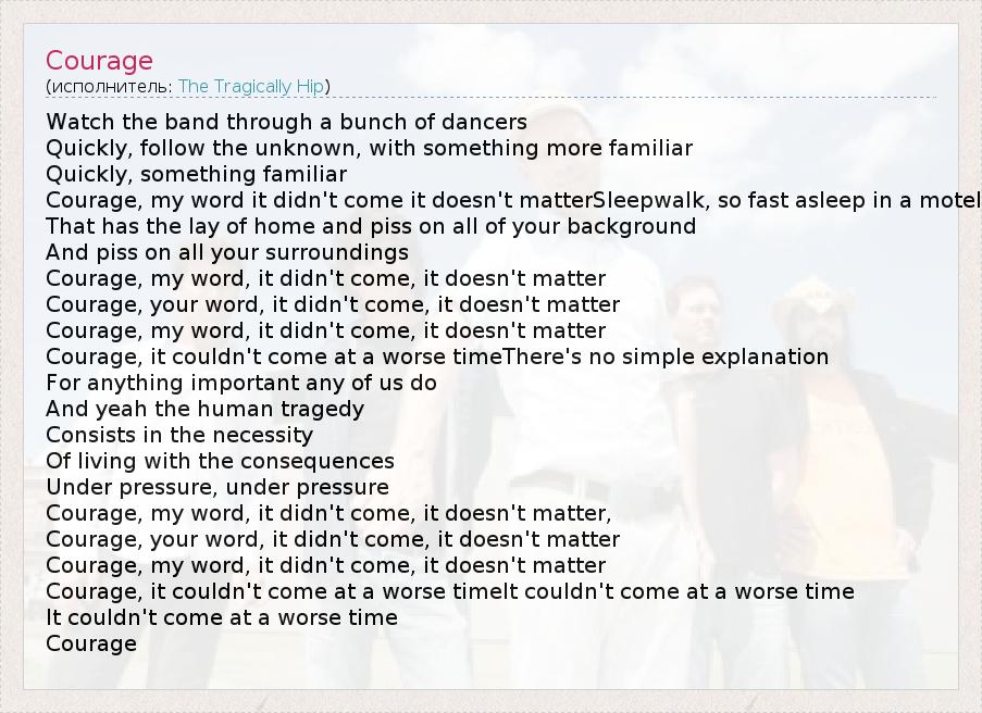А как ты думаешь, о чем песня "Courage" ?